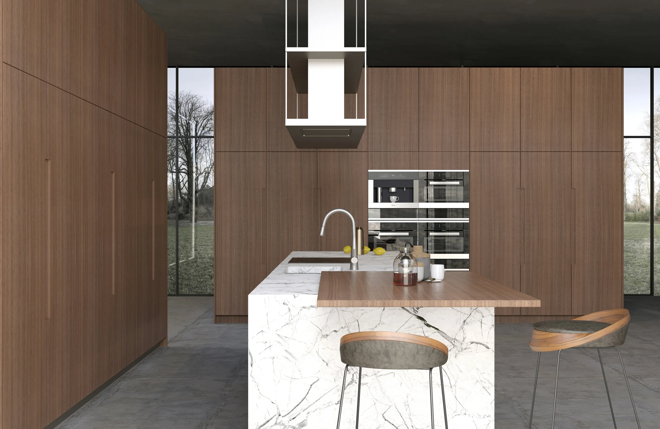 The original charm of a kitchen, the feeling of coming home, the sense of refuge and the scent of tasty meals – the best place to experience all this is in a kitchen built with Premium American Walnut – the aura of this Premium, soft, warm wood and its resinous fragrance create a natural primitiveness with its own very special homely charm.